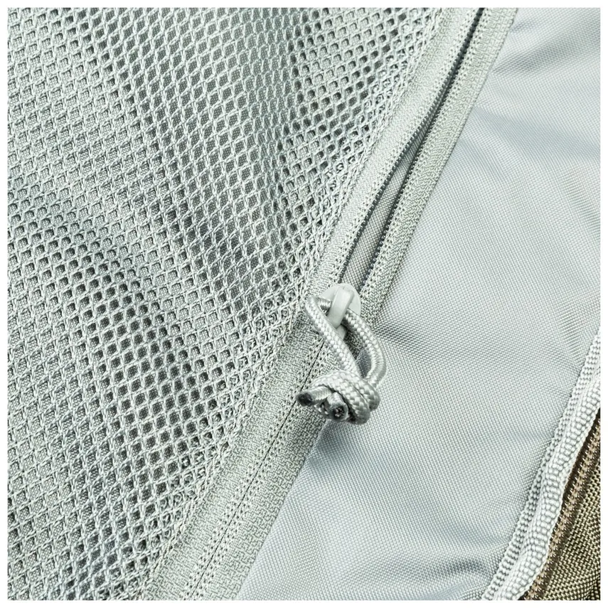 - Front pocket with loop faced laser-cut MOLLE platform and zippered mesh pocket