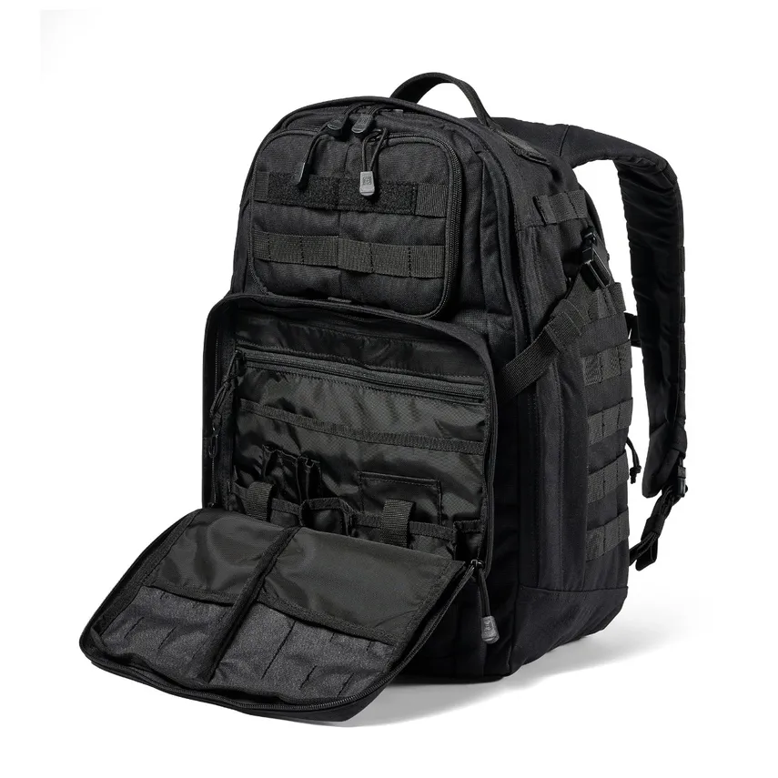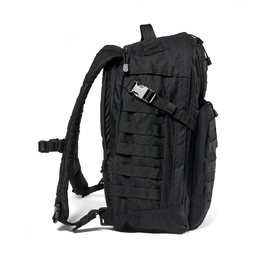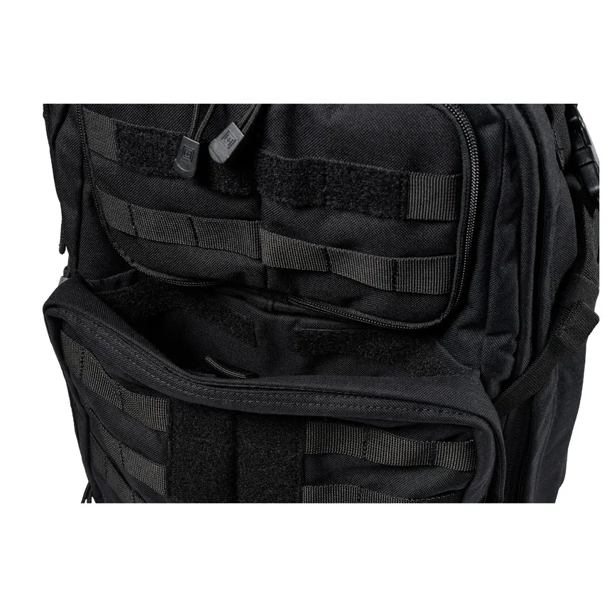 The generous MOLLE attachment points and spacious storage compartments enable users to organize their gear efficiently and accessibly. With its signature Center Line™ design, the RUSH® 24 2.0 Backpack exhibits a sleek and modern appearance that blends seamlessly with any environment. The contoured yoke shoulder strap system ensures a comfortable fit, while the back panel ventilation channels reduce contact area and allow warm vapor to escape, enhancing breathability during extended wear. The durable water-resistant fabric coating repels moisture to keep your belongings dry and protected. The RUSH® 24 2.0 Backpack is also compatible with the 5.11® RUSH® Tier System, allowing for modular and customized attachment of accessories and pouches. Experience the ultimate in versatility and performance with the RUSH® 24 2.0 Backpack 37L. Shop the RUSH® Collection.